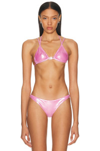 Details - Self: 78% polyester, 22% elastane - Lining: 85% polyamide, 15% elastane - Hand wash - Halterneck tie-up closure - Back S-hook closure - Unpadded cups - Metallic coated jersey fabric - Item not sold as a set - Made in Italy - Our Style No. BMAF-WX4 - Manufacturer Style No. P544D008A