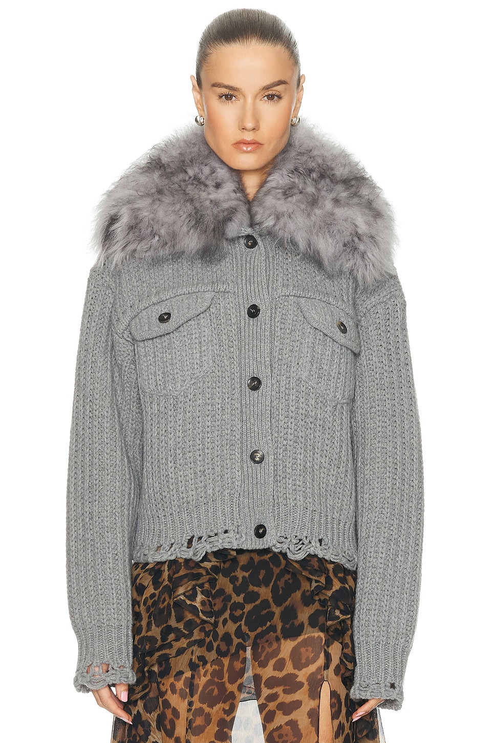 Details - Self: 90% wool, 10% cashmere - Contrast Fabric: 100% dyed lamb fur - Fur Origin: China - Dry clean only - Front button closure - Detachable fur collar - Midweight knit fabric with distressed trim - Made in Italy - Our Style No. BMAF-WK36 - Manufacturer Style No. A522M602A