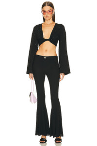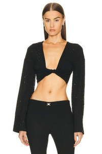 rhinestone-embellished twist front crop top.