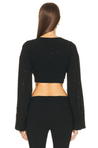 Details - 98% viscose, 2% elastane - Made in Italy - Dry clean only - Hidden side zipper closure - Front twisted fabric detail - Split cuffs - Allover crystal embellished detail - Our Style No. BMAF-WS36 - Manufacturer Style No. 2C208A