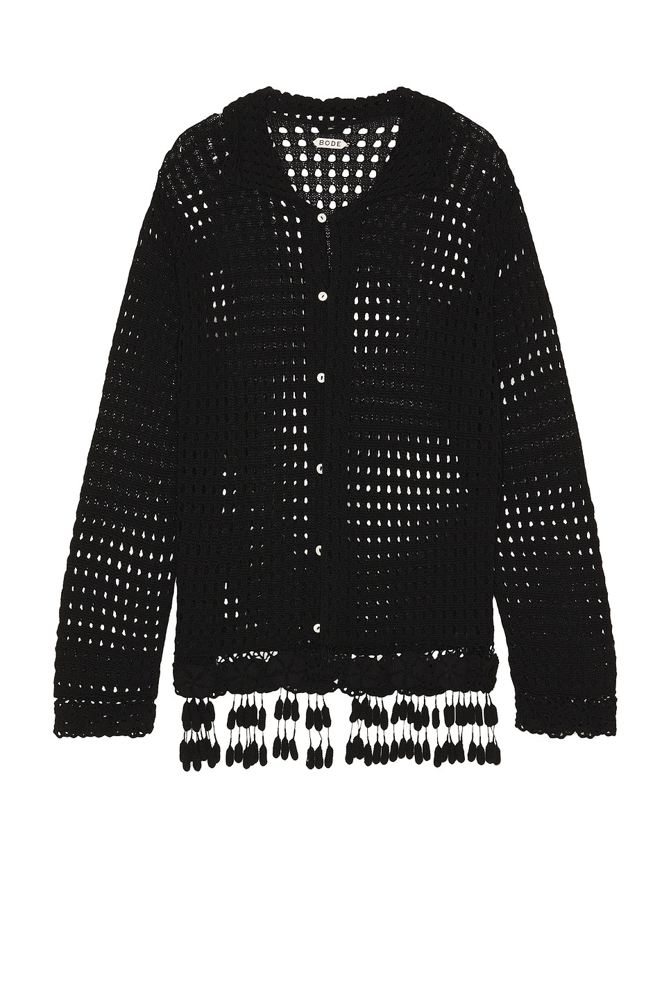 Blossom Tasselled Crocheted Pima Cotton Shirt Black