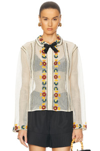 Details - 100% cotton - Made in India - Dry clean only - Back button loop closure - Front faux button closure and embroidered floral detailing - Lightweight mesh fabric - Garment is intentionally sheer, undergarments will show through. - Please note undergarment not included - Our Style No. BOFE-WS88 - Manufacturer Style No. WRS25SH013