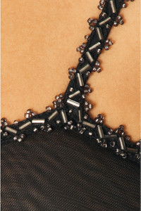 Details - 100% nylon - Made in India - Dry clean only - Back button loop closure - Mesh fabric with beaded trim and shoulder straps - Our Style No. BOFE-WS60 - Manufacturer Style No. WRS24UP005