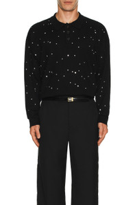 Details - 100% merino wool - Made in Italy - Machine wash - Ribbed trim - Crystal embellished knit fabric - Our Style No. BOFE-MS39 - Manufacturer Style No. MRF24KT041