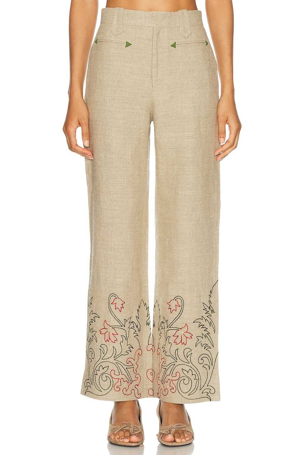 Embroidered linen wide-leg pants
