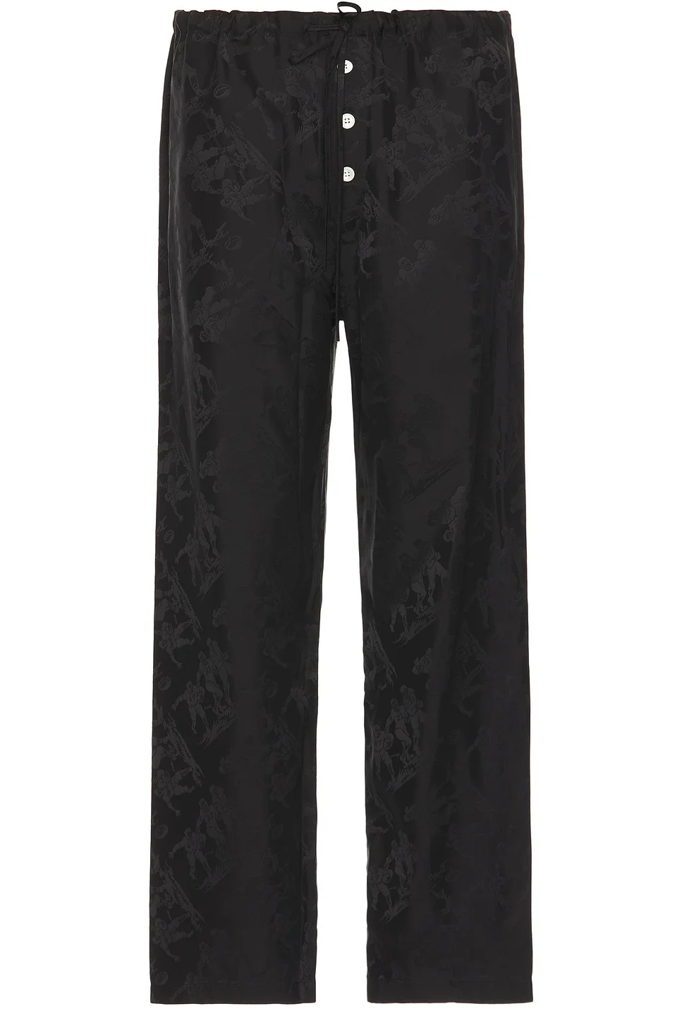 Details - 87% viscose, 13% silk - Made in Portugal - Dry clean only - Drawstring closure - Front button detail - 3-pocket design - Tonal graphic detail throughout - Lightweight satin fabric - Our Style No. BOFE-MP6 - Manufacturer Style No. MRF24BT042