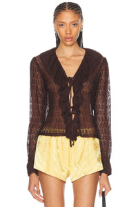 Details - 100% nylon - Made in India - Dry clean only - Front tie-up closure - Lace fabric with flounce collar design - Elastic cuffs - Garment is intentionally sheer, undergarments will show through - Our Style No. BOFE-WS73 - Manufacturer Style No. WRF24SH020