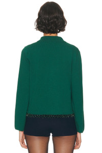 Details - 70% lambswool extra fine, 30% cashmere - Made in Romania - Dry clean - Open design - Self-tie closure at front - Collar detail - Knit textile - Drop-gemstone trim at hem - Our Style No. BOFE-WK59 - Manufacturer Style No. WRF25KT027