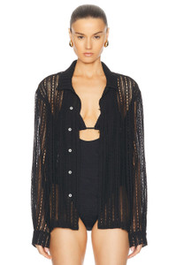 Details - 100% cotton - Made in India - Dry clean only - Front button loop closure - Button cuffs - Open guipure lace fabric - Our Style No. BOFE-WS52 - Manufacturer Style No. MRS24SH045