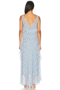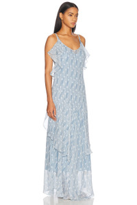 Meridian ruffled printed silk-crepon maxi dress Blue