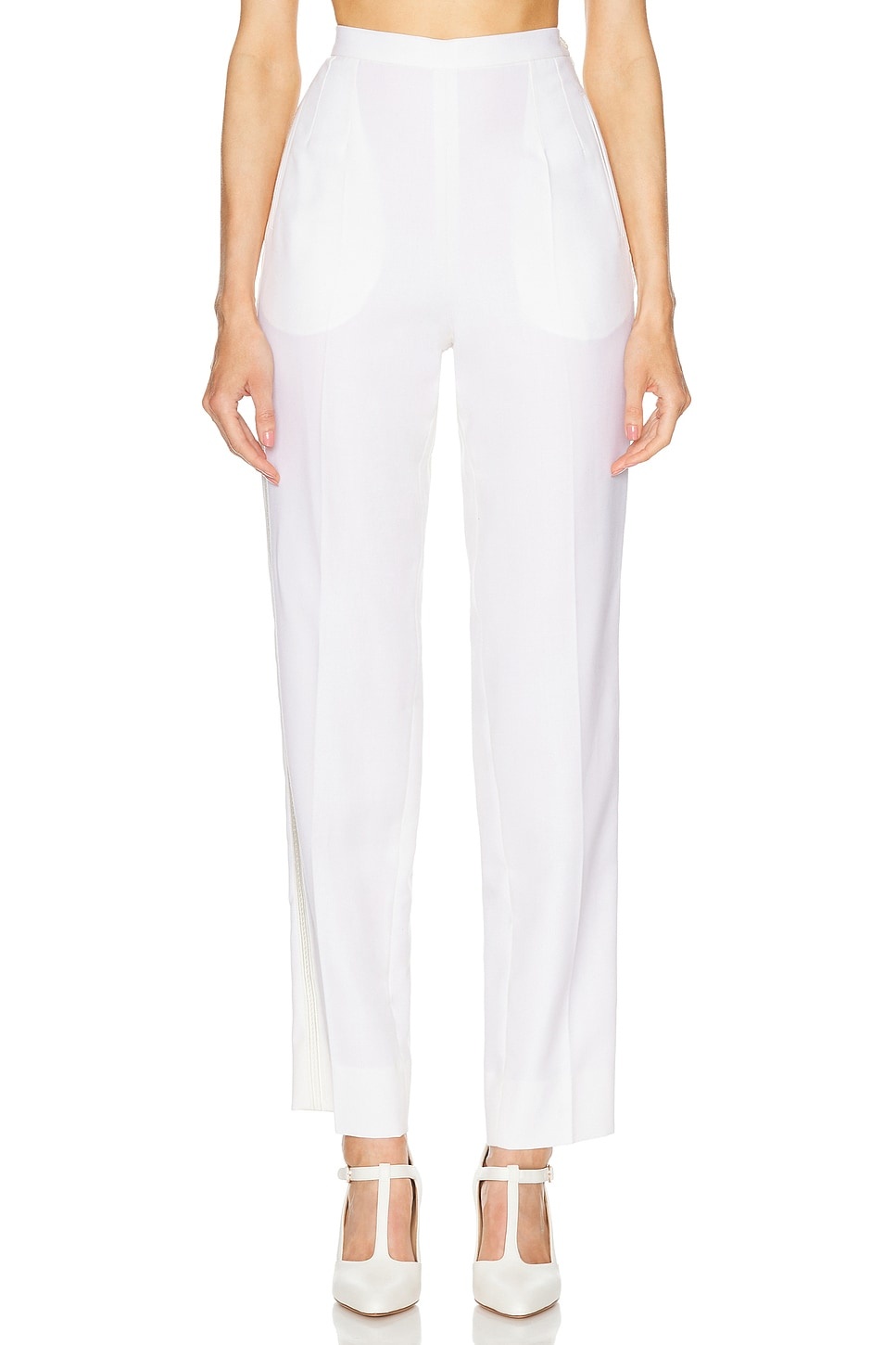 Details - Twill textile - Imported - Dry clean recommended - Hidden side zipper closure - Side welt pockets and embroidered patch along side - High-waist design - Our Style No. BOFE-WP20 - Manufacturer Style No. WRF24BT015