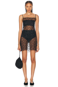 Details - 100% nylon - Made in India - Dry clean only - Unlined - Pull-on styling - Lace fabric with tonal sequin detail - Garment is intentionally sheer, undergarments will show through. - Please note undergarment not included - Our Style No. BOFE-WD20 - Manufacturer Style No. WRF24DR042