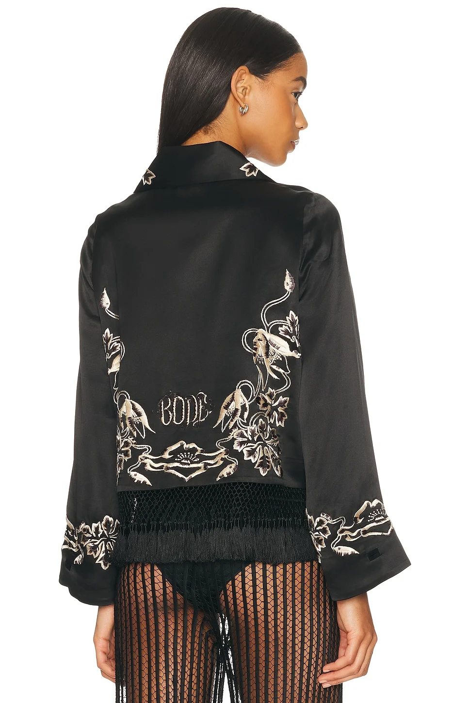 Phantasm Fringed Embroidered Silk-satin Jacket