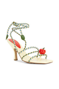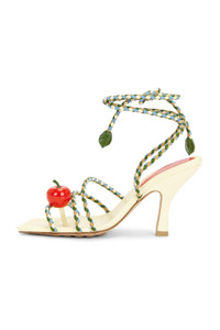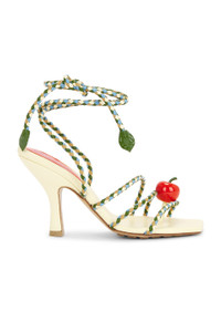 Details - Intrecciato leather upper with leather sole - Made in Italy - Wraparound ankle tie closure - Leather lining - Acrylic cherry at toe - Square toe - Stiletto heel - Approx 90mm/ 3.5 inch heel - Our Style No. BOTT-WZ605 - Manufacturer Style No. 816473-VBSDG-7517