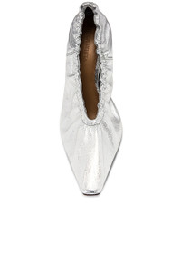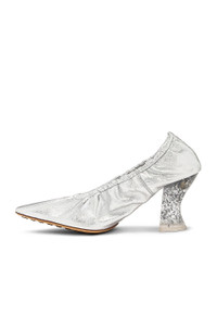 Details - Metallic crush nappa lambskin upper with leather sole - Made in Italy - Slip-on styling - Gathering opening - Rubber tap lucite heel with metallic flecks - Rubber-injected sole for comfort and stability - Pointed toe - Approx 75mm/ 3 inch heel - Our Style No. BOTT-WZ243 - Manufacturer Style No. 651356 V1AI0 1414