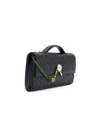 Details - Intreciatto lambskin leather exterior with smooth calfskin leather lining - Foldover flaptop with thread-through pin flap closure - One main compartment with single interior flat pocket and 6 card slots - Vining daisy blossom and golden hardware - Measures approx 30 cm W x 13 cm H x 1 cm D - Top handle with a 4 cm drop - Made in Italy - Our Style No. BOTT-WY1930 - Manufacturer Style No. 836810-V4SCH-2081