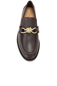 Details - Calfskin upper with leather sole - Made in Italy - Slip-on styling - Knotted gold-tone hardware at vamp - Round toe - Approx 13mm/ 0.75 inch heel - Our Style No. BOTT-WZ582 - Manufacturer Style No. 796697-V4R30-2113