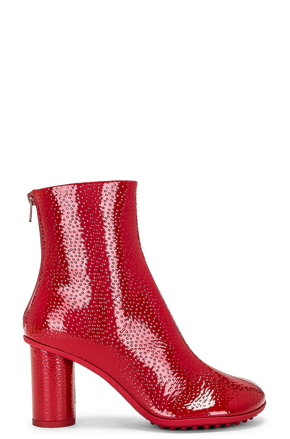 Details - Strawberry-textured calfskin leather upper with bio-based lug rubber outsole and lambskin lining - Made in Italy - Heel zipper closure - Rounded pointed toe - Chunky heel - Approx 75mm/ 3 inch heel - Shaft measures approx 5.4" - Shaft measures approx 29" in circumference - Our Style No. BOTT-WZ486 - Manufacturer Style No. 753881-V3BW0-6229