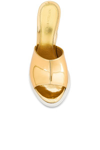 Details - Metallic leather upper with leather and rubber sole - Made in Italy - Slip-on styling - Leather footbed and lining - Almond toe with structural heel - Approx 95mm/ 3.75 inch heel - Our Style No. BOTT-WZ558 - Manufacturer Style No. 790821-V3VO0-7043