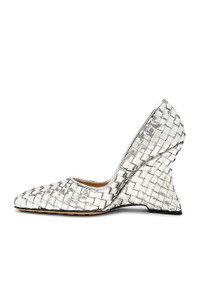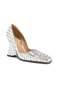 Details - Mirrored calf leather upper with leather and rubber sole - Made in Italy - Leather footbed and lining - Square toe with structural wedge - Approx 95mm/ 3.75 inch wedge - Our Style No. BOTT-WZ468 - Manufacturer Style No. 740715-V2WS0-1414