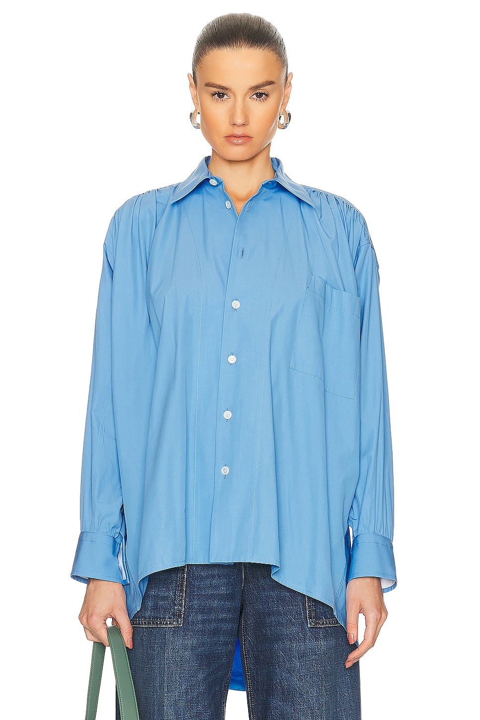 Details - 72% cotton, 20% viscose, 8% polyester - Made in Italy - Dry clean only - Front button closure with button cuffs - Poplin fabric - Our Style No. BOTT-WS67 - Manufacturer Style No. 777451-VA5Y0-4225