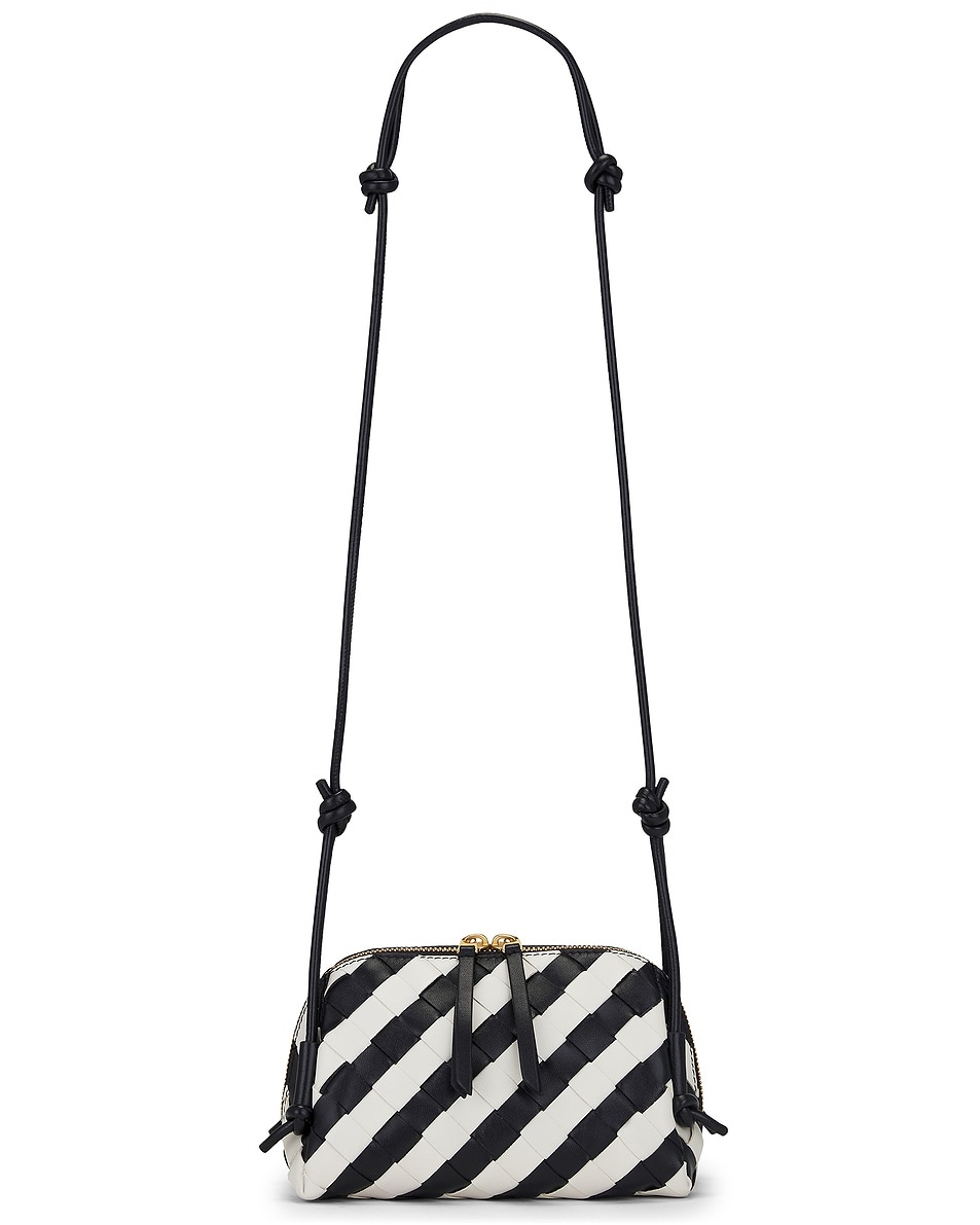 Details - Intrecciato nappa exterior with smooth calfskin lining - Made in Italy - Dual direction top zipper closure - One main compartment - Interior slip pocket - Detachable and adjustable tubular shoulder strap with sliding knots - Measures approx 20 cm W x 11 cm H x 8 cm D - Shoulder strap with a 53 cm drop - Our Style No. BOTT-WY1868 - Manufacturer Style No. 794258-V5JR0-8882