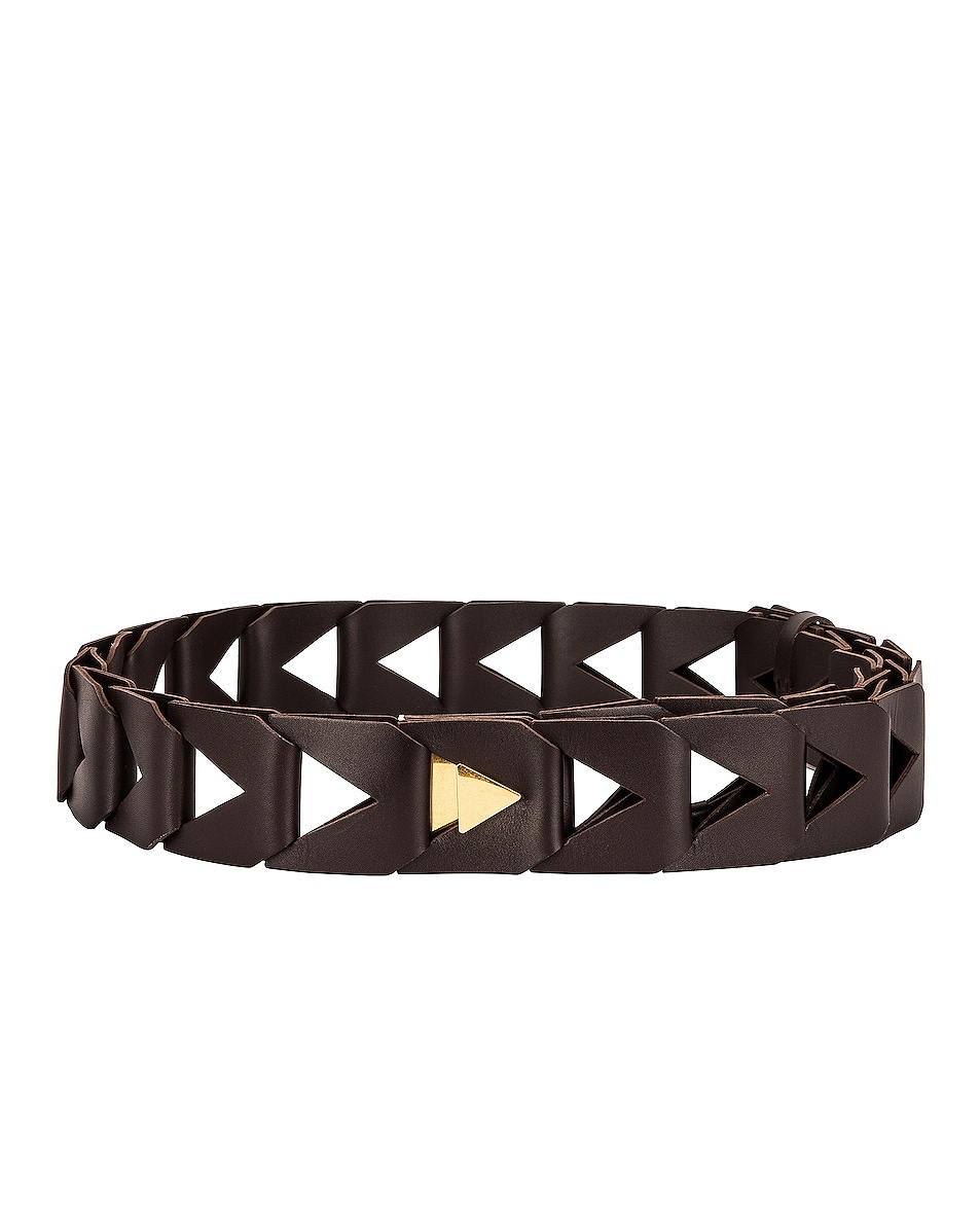 Details - French Calf belt with triangular cut-out detail - Made in Italy - Measures approx 2" in height - Modulated strap - Hook closure - Our Style No. BOTT-WA75 - Manufacturer Style No. 632576 VMAU0