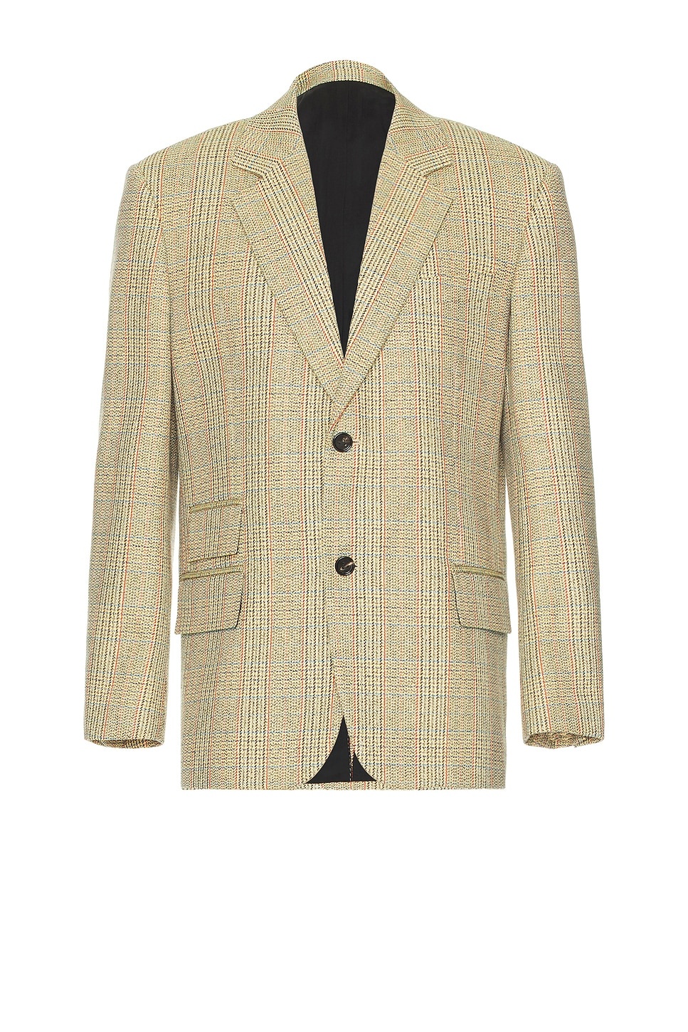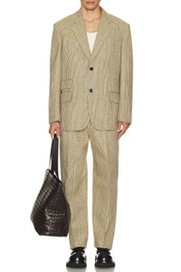Details - 48% wool, 28% cotton, 26% polyester - Made in Italy - Dry clean only - Dual front button closure - Lightly padded shoulders - Side flap pockets - Midweight suiting fabric - Our Style No. BOTT-MO41 - Manufacturer Style No. 744612-V4BW0-1487