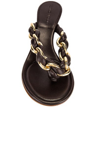 Details - Lambskin leather upper with leather sole - Made in Italy - Woven gold-tone chain link detail - Cushioned footbed - Rubber-injected leather sole for comfort and stability - Approx 50mm/ 2 inch spool heel - Our Style No. BOTT-WZ176 - Manufacturer Style No. 659002 V0V50 2113