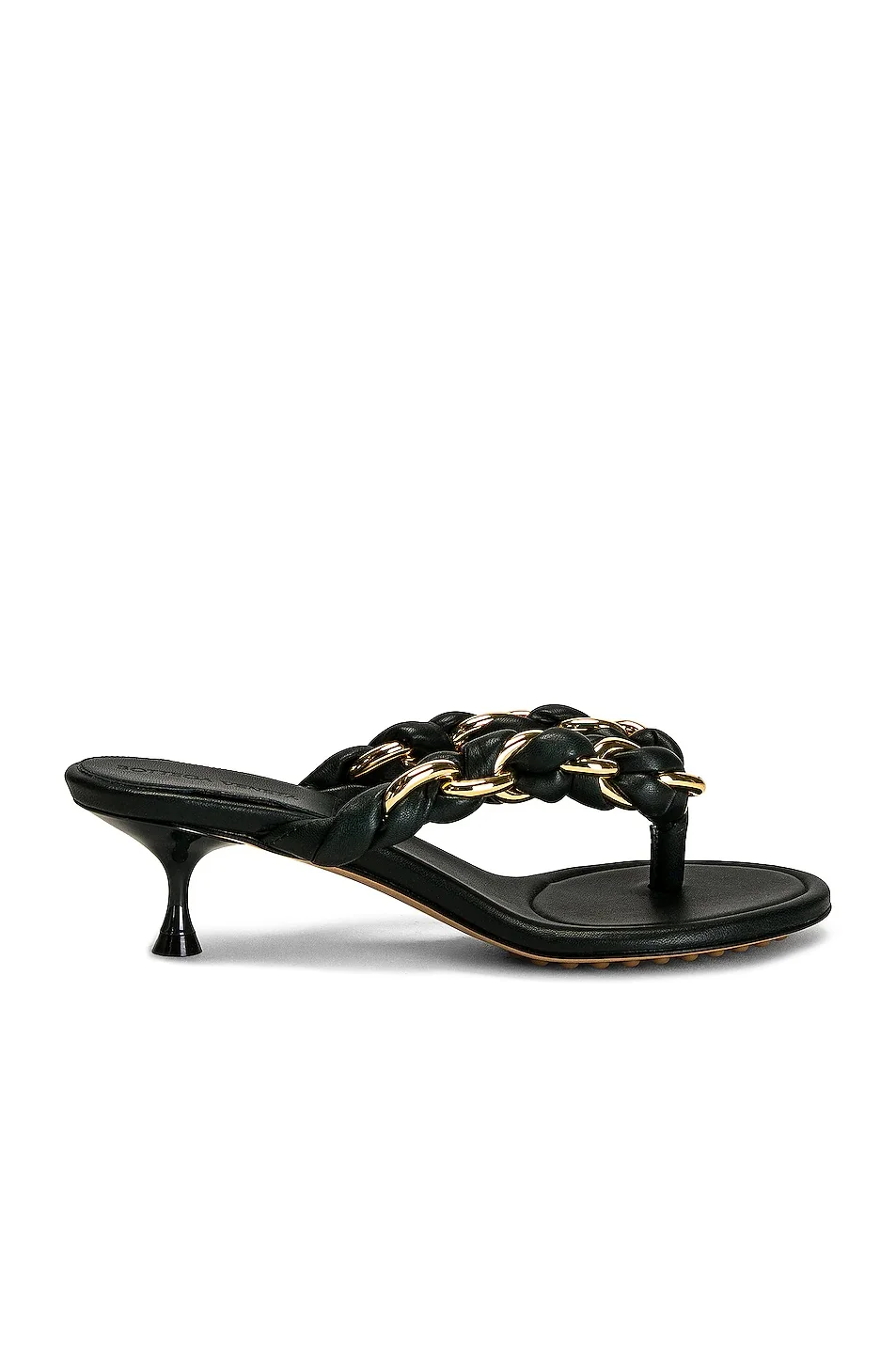 Details - Leather and chainlink upper with rubber-injected leather sole and gold-tone hardware - Made in Italy - Chainlink strap with braided leather detail - Leather footbed - Round toe with kitten heel - Please note that shade is a deep green - Approx 50mm/ 2 inch heel - Our Style No. BOTT-WZ351 - Manufacturer Style No. 659002 V0V50 4615