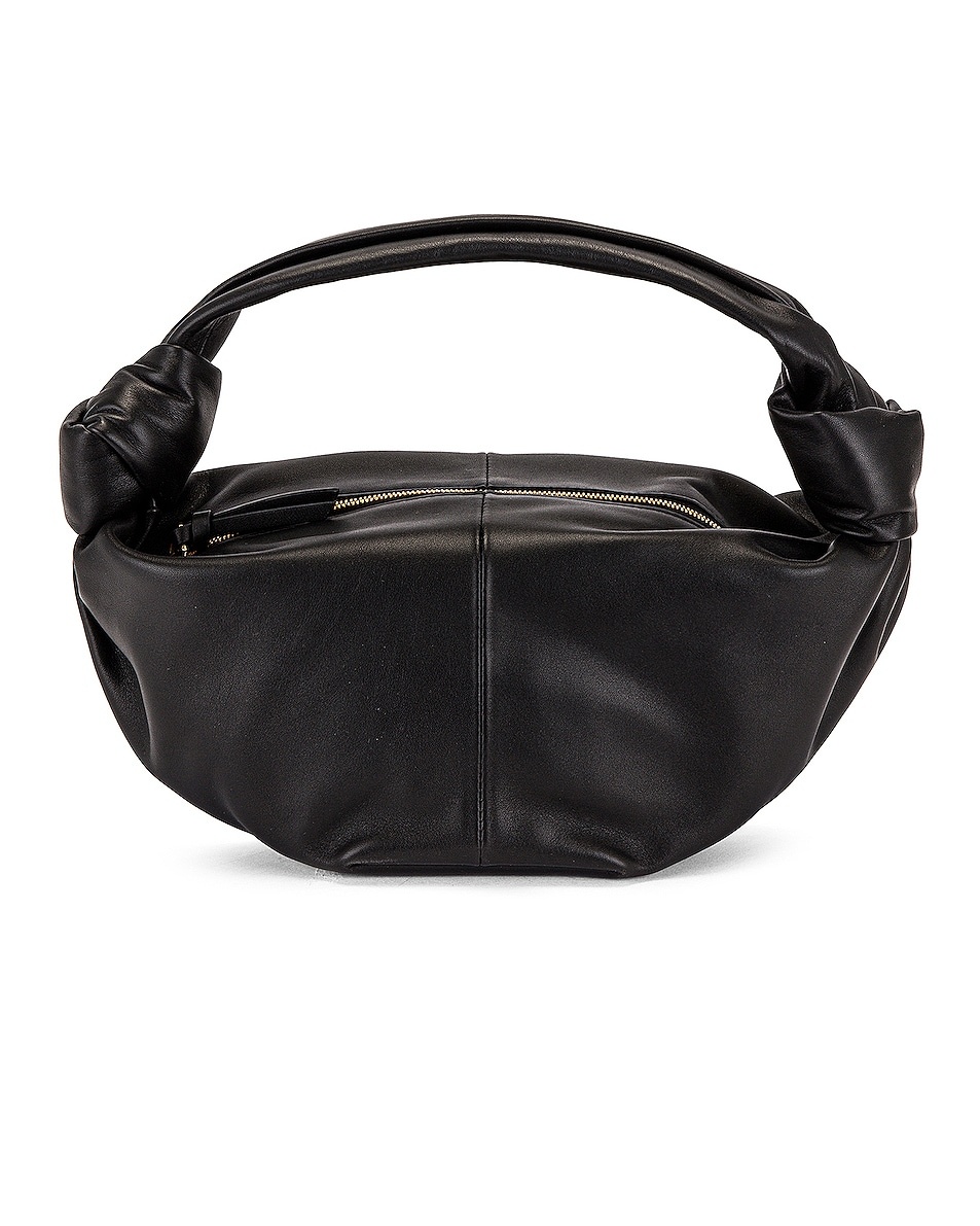 Details - Calfskin nappa leather with calfskin leather lining and brushed gold-tone hardware - Made in Italy - Top zipper closure with leather pull - One main compartment - Measures approx 12"W x 5"H x 6"D - Top handle with double knot detail and a 2.5" drop - Our Style No. BOTT-WY601 - Manufacturer Style No. 629635 VCP41 8425