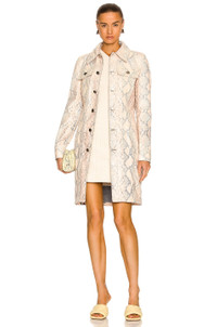 Details - Self: 100% goat leather - Lining: 100% cotton - Made in Italy - Professional leather clean only - Front button closure with optional waistbelt - Breast flap pockets with button closure - Side seam pockets - Buttoned cuffs - Snakeskin embossed leather - Our Style No. BOTT-WO24 - Manufacturer Style No. 690562 V1O30 5481