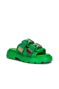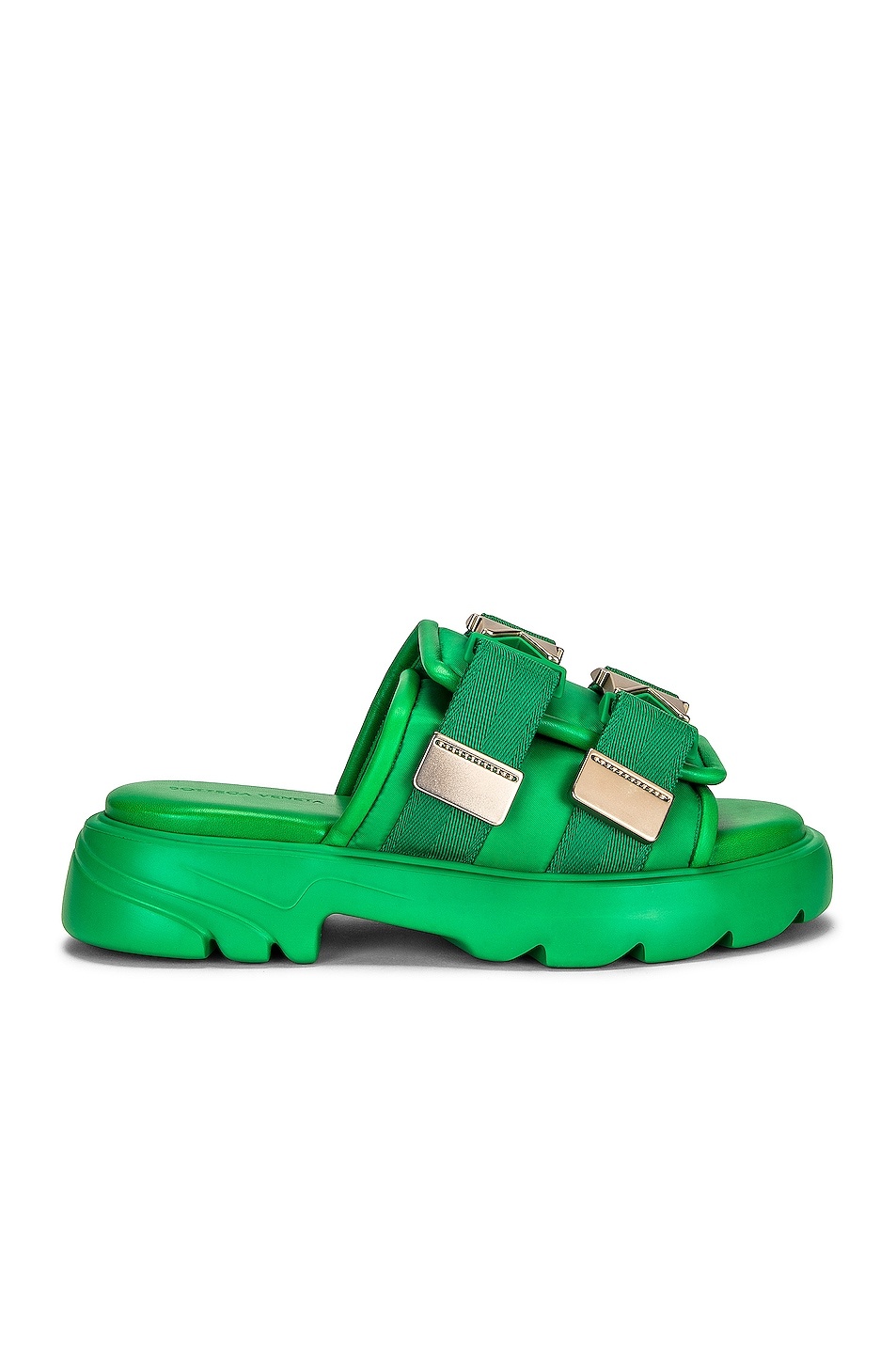 Details - Textile upper with ultra lightweight rubber sole and silver-tone hardware - Made in Italy - Adjustable velcro straps - Lambskin lining with debossed Bottega Veneta logo detail - Approx 46mm/ 1.8 inch heel - Our Style No. BOTT-WZ322 - Manufacturer Style No. 690034 V0DS2 3730