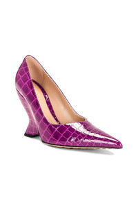 Details - Croc-embossed leather upper with rubber-injected leather sole - Made in Italy - Leather lining - Pointed toe with sculptural wedge - Approx 100mm/ 4 inch wedge - Our Style No. BOTT-WZ399 - Manufacturer Style No. 716210-V2DW0-5017