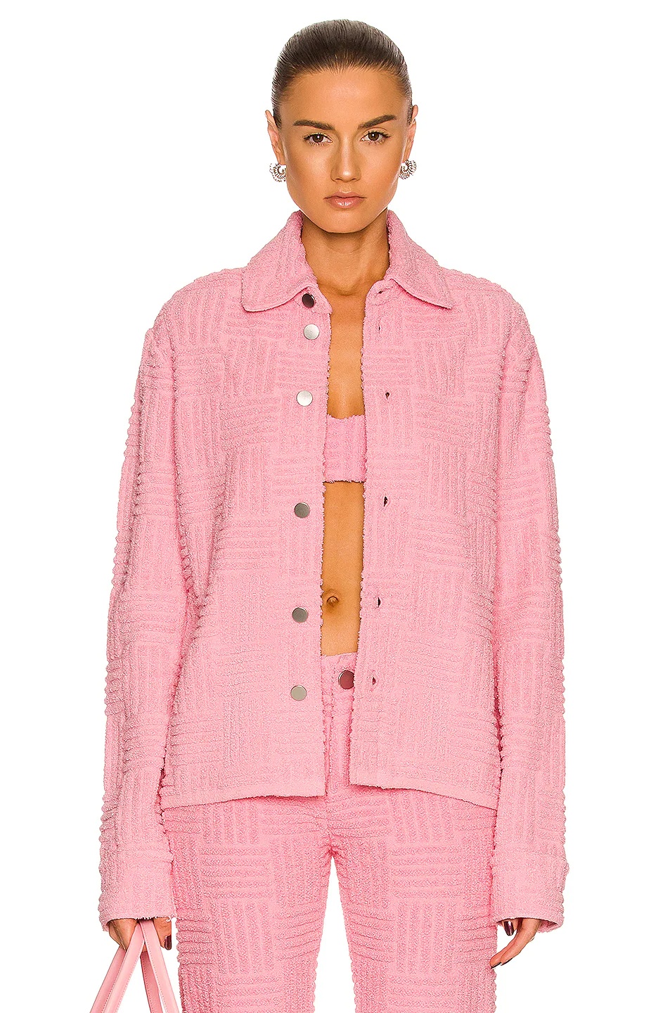 Details - 56% cotton, 20% polyamide, 20% viscose, 4% poly - Made in Italy - Dry clean only - Front button closures - Buttoned cuffs - Jacquard intreccio pattern terrycloth - Item not sold as a set - Our Style No. BOTT-WO22 - Manufacturer Style No. 692861 V1LW0 5069