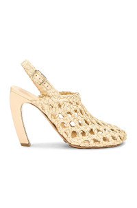 Details - Braided raffia with rubber-injected leather sole - Made in Italy - Ankle buckle closure - Leather footbed - Open styling - Spool heel - Approx 100mm/ 4 inch heel - This item is not available to ship to Australia - Our Style No. BOTT-WZ494 - Manufacturer Style No. 754008-V0GN0-2624