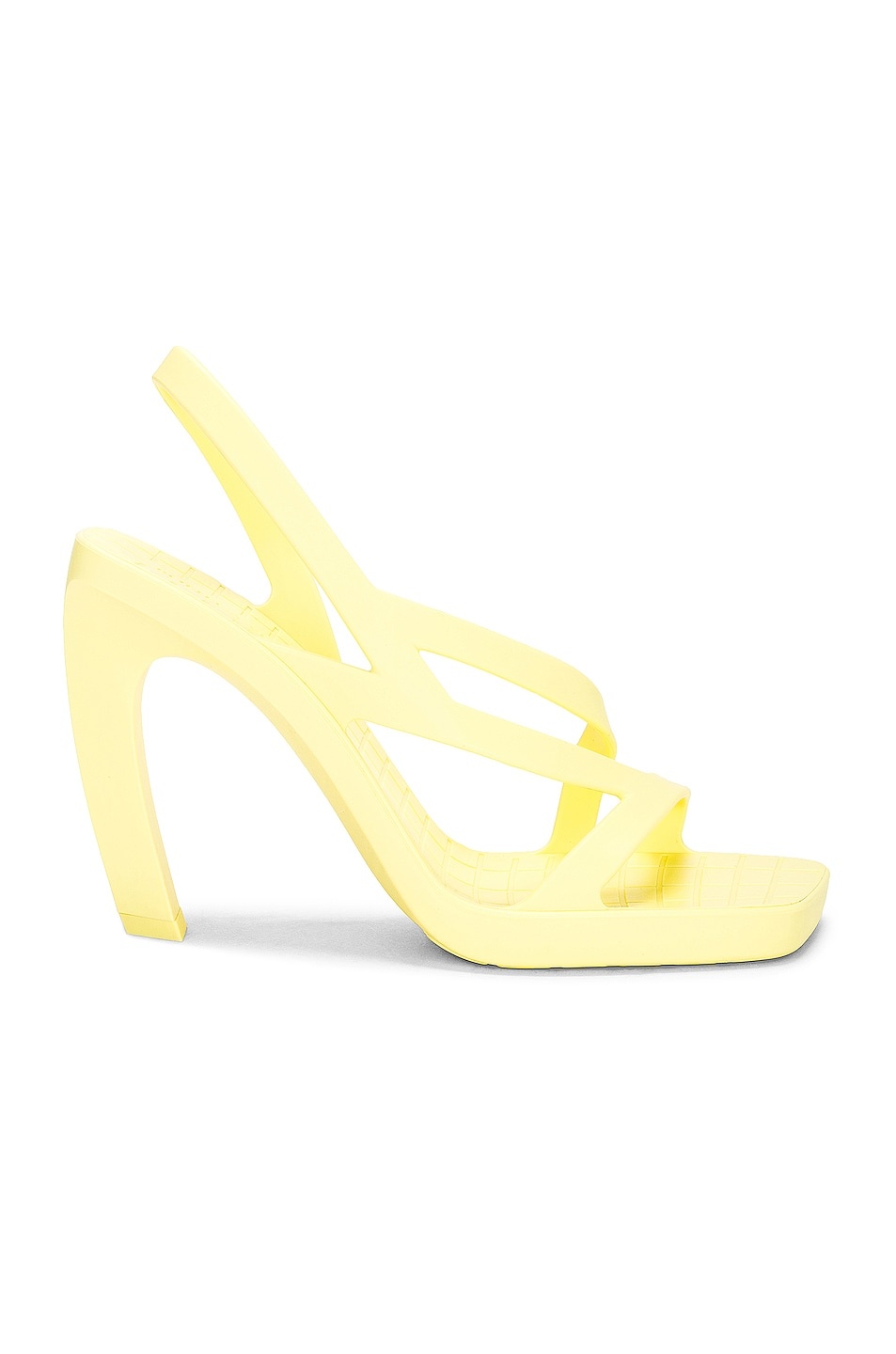 Details - Rubber upper and sole - Made in Italy - Rubber footbed and lining - Three strap vamp styling - Slanted square toe with slanted heel - Approx 115mm/ 4.5 inch heel - Our Style No. BOTT-WZ465 - Manufacturer Style No. 739786-V2AS0-7465