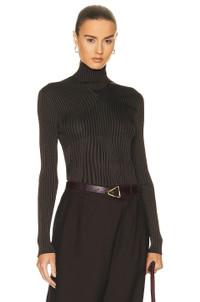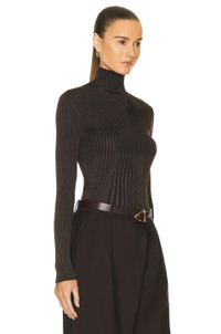 Details - 50% viscose, 50% polyester - Made in Italy - Dry clean only - Turtleneck styling - Back cut-outs with loop button detail - Ribbed knit jersey fabric - Our Style No. BOTT-WK35 - Manufacturer Style No. 715441-V2CX0-2177