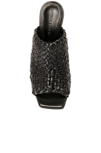 Details - Intreccio leather upper with leather sole - Made in Italy - Slip-on styling - Leather footbed and lining - Square toe with gold-tone knotted statement heel - Approx 75mm/ 3 inch heel - Our Style No. BOTT-WZ495 - Manufacturer Style No. 754143-V2P50-1000