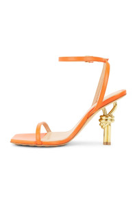 Details - Lambskin upper with leather and rubber sole - Made in Italy - Wrap around ankle buckle closure - Square toe - Signature knot galvanized heel - Approx 100mm/ 4 inch heel - Our Style No. BOTT-WZ569 - Manufacturer Style No. 775470-V3VN0-7511