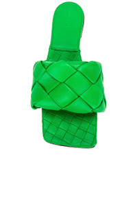 Details - Intreccio lambskin upper with leather sole - Made in Italy - Slip-on styling - Partial intreccio leather footbed - Rubber injected outsole for comfort and stability - Rubber tap heel - Exaggerated square toe - Our Style No. BOTT-WZ225 - Manufacturer Style No. 608853 VBSS0 3730