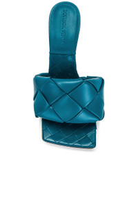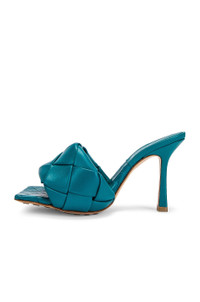Details - Intreccio nappa upper with leather sole - Made in Italy - Partial intreccio leather footbed - Rubber injected outsole for comfort and stability - Exaggerated square toe - Approx 100mm/ 4 inch heel - Our Style No. BOTT-WZ228 - Manufacturer Style No. 608854 VBSS0 4484