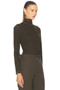 Details - 75% cotton, 25% elastane - Made in Italy - Dry clean only - Hidden partial back zipper closure - Turtleneck design - Logo detail at bottom front - Jersey fabric - Our Style No. BOTT-WS86 - Manufacturer Style No. 799562-V4WY0-3324