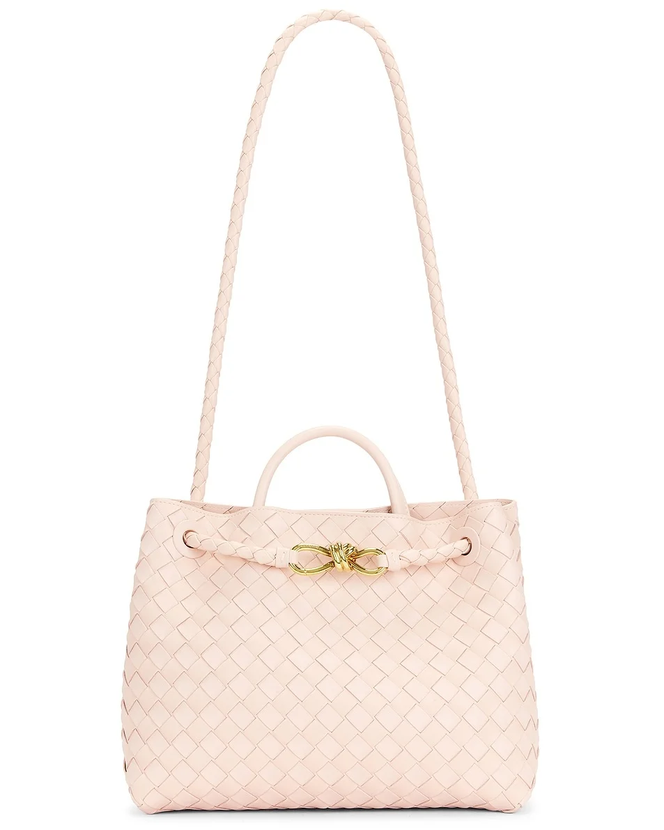 Details - Intrecciato leather exterior with lambskin lining - Made in Italy - Top magnetic button closure - One main compartment - Interior zipper pocket - Two interior open pockets - Gold-tone brass knot hardware - Measures approx 32 cm W x 25 cm H x 11 cm D - Shoulder strap with a 45 cm drop - Our Style No. BOTT-WY1826 - Manufacturer Style No. 766016-VCPP1-6814