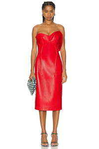 Details - Self: 100% lambskin - Lining: 73% viscose, 25% polyamide - Made in Italy - Professional leather clean only - Fully lined - Hidden back zipper closure - Contour bodice - Faux leather with draped neckline - Our Style No. BOTT-WD92 - Manufacturer Style No. 782648-V40N0-6233