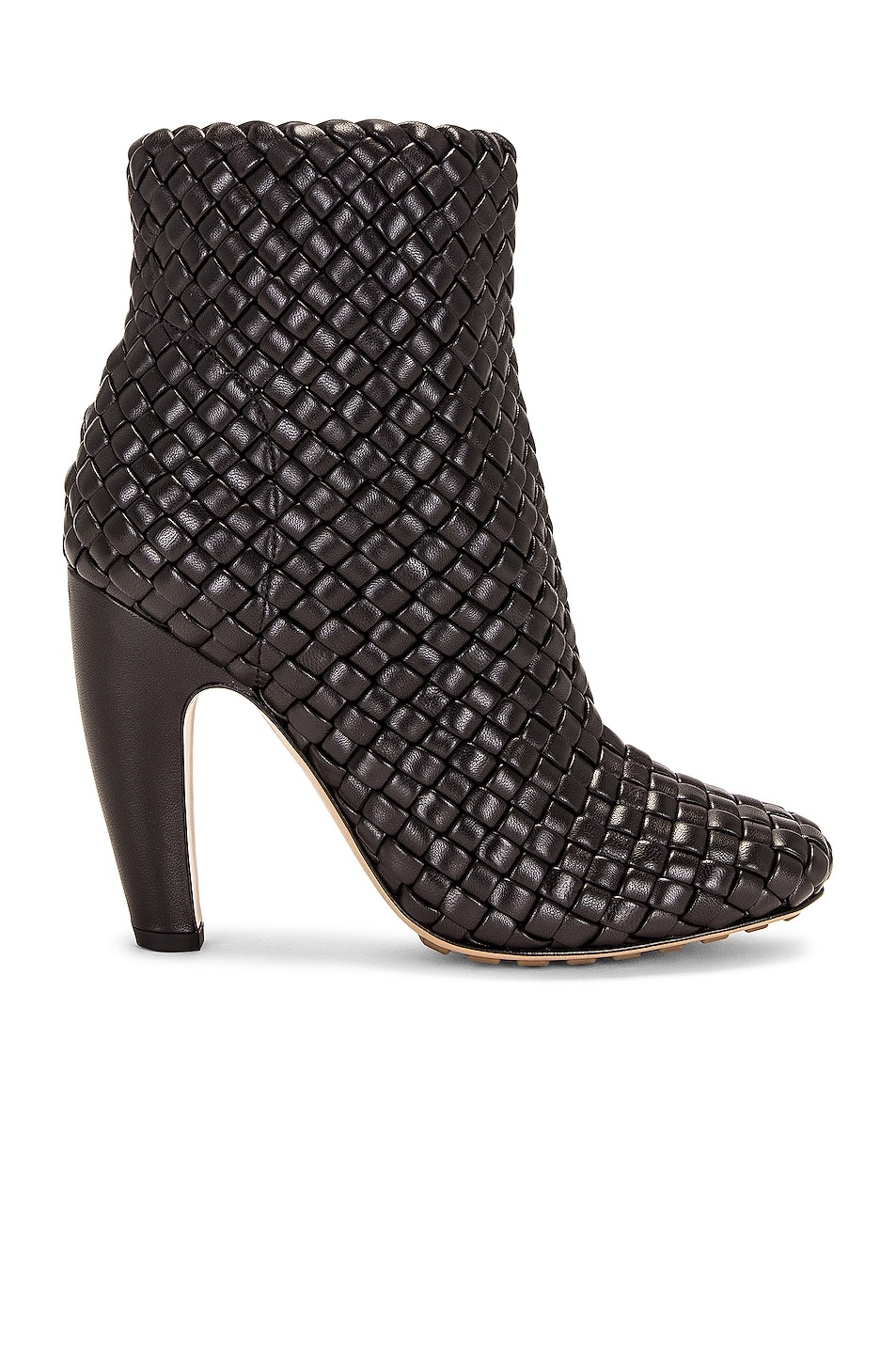 Details - Padded intrecciato lambskin with rubber-injected leather sole - Made in Italy - Slip-on styling - Rounded square toe with curved heel - Approx 108mm/ 4.25 inch heel - Approx 121mm/ 4.75 inch shaft - Our Style No. BOTT-WZ358 - Manufacturer Style No. 716171-V2EH0-1000