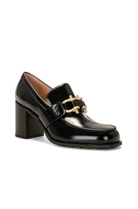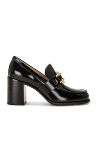 Details - Leather upper with leather sole - Made in Italy - Slip-on styling - Gold-tone hardware at vamp - Leather footbed and lining - Rounded square toe with wooden block heel - Approx 75mm/ 3 inch heel - Our Style No. BOTT-WZ482 - Manufacturer Style No. 754301-V2JB0-1000