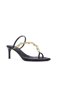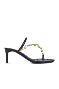 Details - Leather upper and lining with rubber sole - Made in Italy - Slip-on styling - Gold-tone chain link detail with connecting toe ring - Angled toe - Rubber-injected leather sole for comfort and stability - Approx 65mm/ 2.5 inch heel - Our Style No. BOTT-WZ531 - Manufacturer Style No. 775409-V3H60-1000
