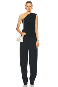 Details - 46% wool, 44% viscose, 10% polyamide - Made in Italy - Dry clean only - Hidden side zipper closure - One shoulder styling with gold-tone accents - Midweight twill fabric - Our Style No. BOTT-WS96 - Manufacturer Style No. 815004-V4ZE0-1000
