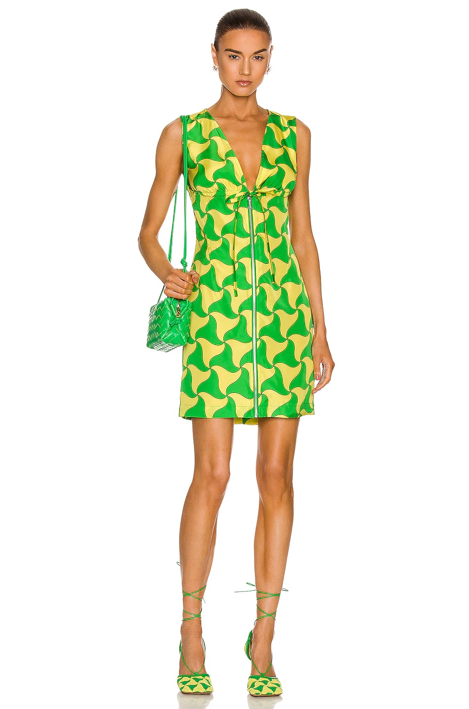 Details - 84% viscose, 16% silk - Made in Italy - Dry clean - Unlined - Exposed front zip closure - Drawstring underbust - Our Style No. BOTT-WD49 - Manufacturer Style No. 691535 V1N20 7072